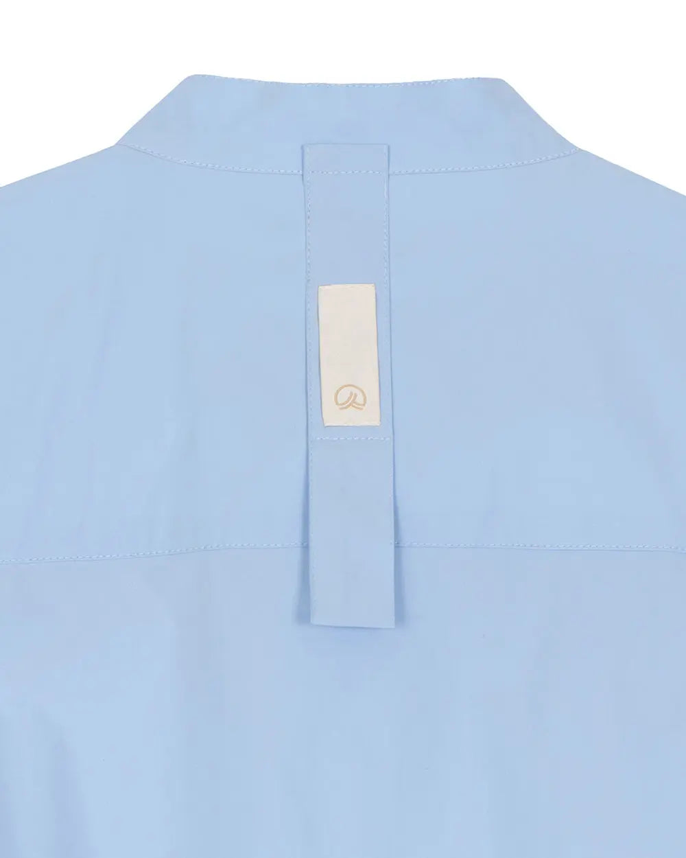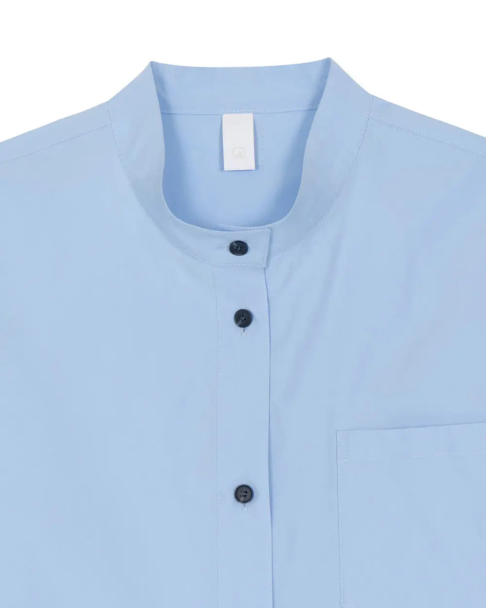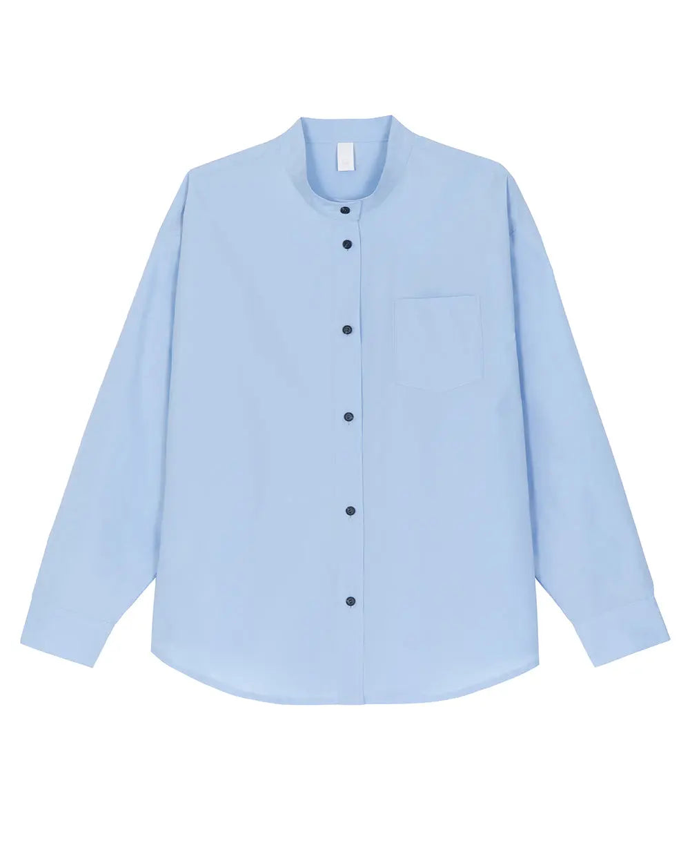 Born from the question of how SUIT could redefine “basic,” this shirt holds true to its silhouette and detail. Its standout feature—a deep navy button, like a drop of ink on a clean canvas—adds a subtle, mysterious allure.