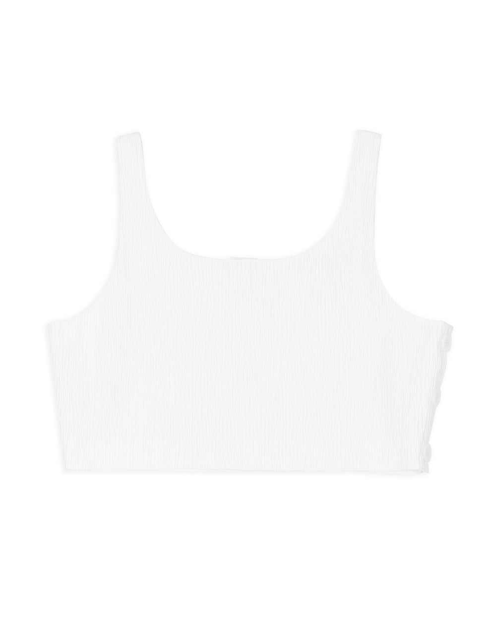 Inspired by the quiet elegance of pine, this piece features a clean silhouette with hidden side buttons that blend function and subtle charm. The relaxed fit layers effortlessly, while the wide neckline, slender straps, and deep armholes create a refined, airy presence. Lined with premium stretch fabric, it’s a design where even the unseen details speak to its lasting value.
