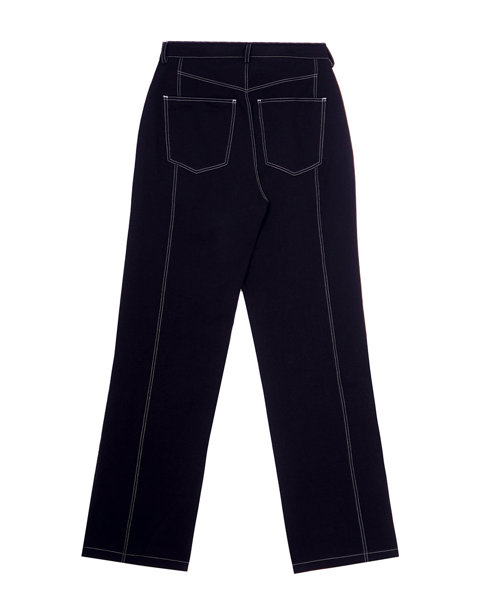 - Pants: Vertical seam lines create a slim, elongated leg silhouette