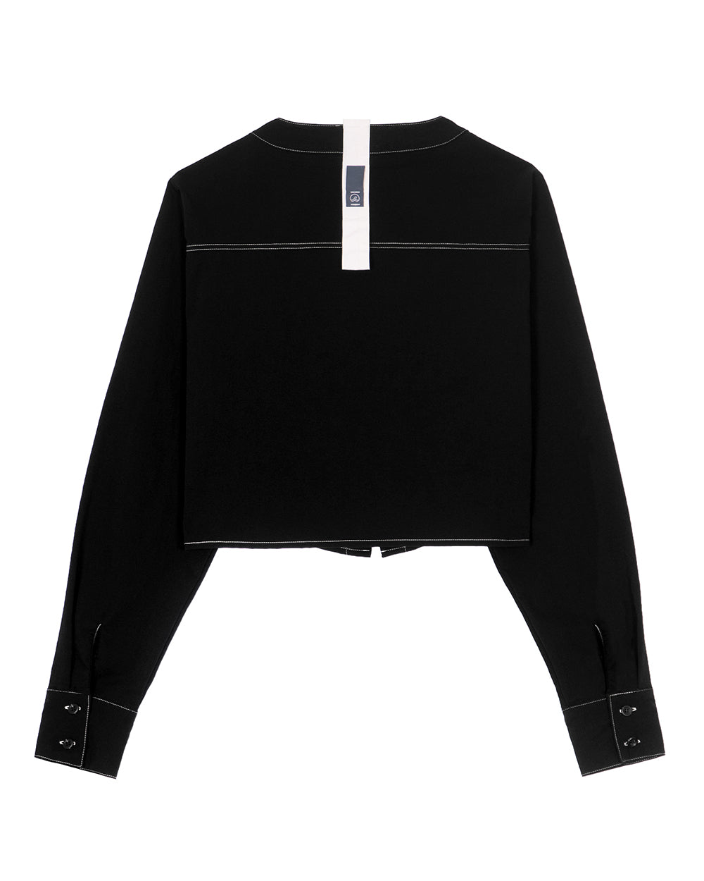 Inspired by the traditional Korean women’s jeogori, this modern shirt reinterprets its signature collar with a contemporary touch. The cropped length accentuates the waist and elongates the legs, while diagonally arranged buttons add a distinctive design finish