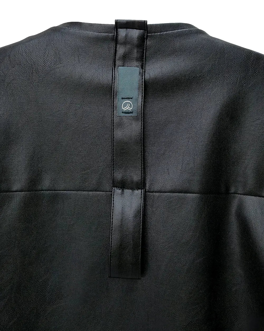 The Dojagi Jacket, named for the curves of Korean pottery, pairs supple vegan leather with a sculptural silhouette. Signature hanbok-inspired sleeves shift from voluminous to fluid with buttoned cuffs, while a diagonal placket and subtle collar add refined structure. Fully lined in luxurious Ssanghakdan, it feels soft, holds its shape, and captures the brand’s essence.